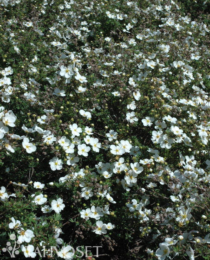 Matalahkokasvuinen, leveä ja runsaasti haarova pensas. Pienet, sinivihreät lehdet puhkeavat varsin myöhään. Suuret, valkoiset kukat kesäkuun lopulta pitkälle syksyyn. Monikäyttöinen, aurinkoisen paikan kasvi sopii mm. laajoihin pensasryhmiin, aidanteeksi, verhopensaaksi luiskiin.