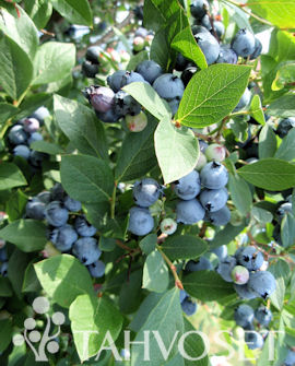 Suuret siniset marjat ovat hapokkaat ja aromikkaat. Voimakaskasvuinen pensas.
