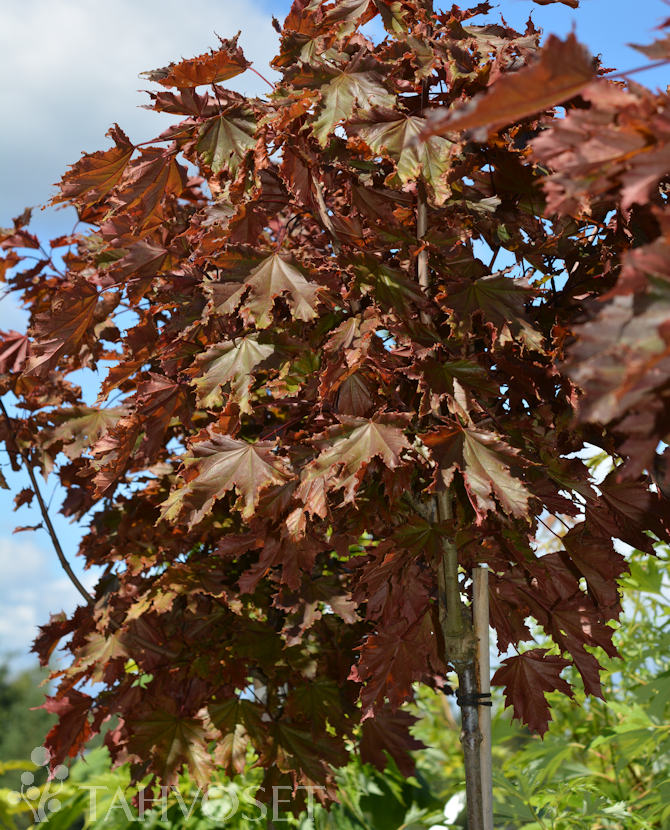 Isot, pyöreähköt, liuskaiset lehdet. Upea syysväritys. Keltaiset kukkatertut lehtien puhkeamisen aikoihin keväällä. Siivekkäät hedelmät. Avoin kasvupaikka.