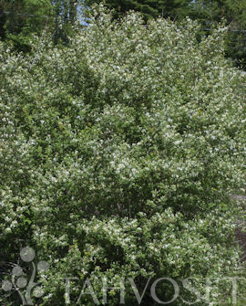 Tuuhea- ja leveäkasvuinen pensas kukkii kesäkuun alkupuolella erityisen runsaasti pienin valkoisin kukkasin. Kukat kellastuvat vanhetessaan. Suuret marjat ovat kirkkaanpunaisia ja kiiltäviä, syömäkelvottomia. Kestävämpi tauteja ja tuholaisia vastaan kuin useimmat kuusamat. Yksittäin, ryhmiin, aidanteisiin. KESKAS-571.