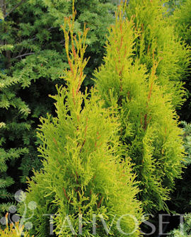Raikkaan keltavihreä tuijalajike. Pylväsmäinen, kasvutapa on hyvin pysty ja tiheä. Terve ja talvenkestävä. Sietää tuulta. Kaunis huomiokasvi esim. havu- ja kivikkoryhmiin.