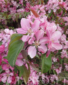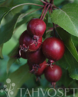 Aluksi pystykasvuisen puun latvus levenee myöhemmin. Lehdet punertavat. Kukat vaaleanpunaisen lilahtavat. Terälehdet reunoistaan sisäänpäin kaartuvat. Kukkii erittäin runsaasti. Punaiset omenat halkaisijaltaan 1-2 cm. Vartettu, perusrunko M. 'Bittenfelder'
