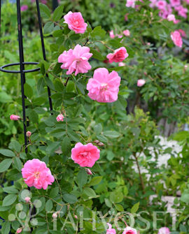 Lämpimän ruusunpunaiset, puolikerrannaiset kukat avautuvat juhannuksen jälkeen ja kukinta kestää n. kuukauden. Näyttävä ja talvenkestävä, kookas ruusu. TTA-713. FinE.