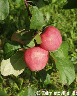 Syyslajike. Hedelmä suuri. Pohjaväri keltainen, osin hehkuvan punaisen peitevärin peittämä. Malto valkea, erittäin mehukas. Maku raikkaan hienoarominen. Herkkulajike. Kypsyy elo-syyskuun vaihteessa ja säilyy noin 2 kk varastossa. Sato runsas ja tasainen. Kotimainen jaloste (Melba x Huvitus). Kauppaanlasku vuosi 2003.