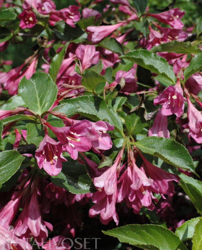Erittäin tiivis ja leveä kasvutapa. Lehdet koristeellisen tummat ja kiiltävät. Runsas kesä-heinäkuun kukinta syvän pinkinpunainen. Yksittäiset kukat torvimaisia, kukat 3-5 kpl ryppäissä. Mukaan ryhmiin aurinkoiselle ja puolivarjoisalle paikalle.