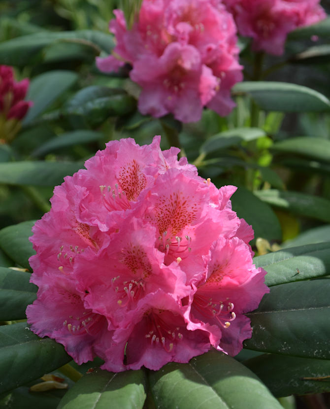 Kukkii näyttävin kukkatertuin kesäkuun alkupuolella. Yksittäiset kukat ovat kookkaita ja saattavat tuoksua miedosti. Kukan ulkopinta ruusunpunainen, sisältä aniliininpunainen. Teriön ylälohkossa on selvästi erottuva punaruskea laikutus. Nuorena rentokasvuisesta pensaasta kehittyy laakeanpyöreä ja tuuhea keskikokoinen pensas. Nuorissa lehdissä rusehtava nukka, täysikasvuisena lehdet lämpimän vihreät. Valittu Helsingin Kaivopuistoon 1970-luvulla istutetuista alppiruusujen risteytysaineistosta. Mustilanalppiruusuristeymä. KA-024.