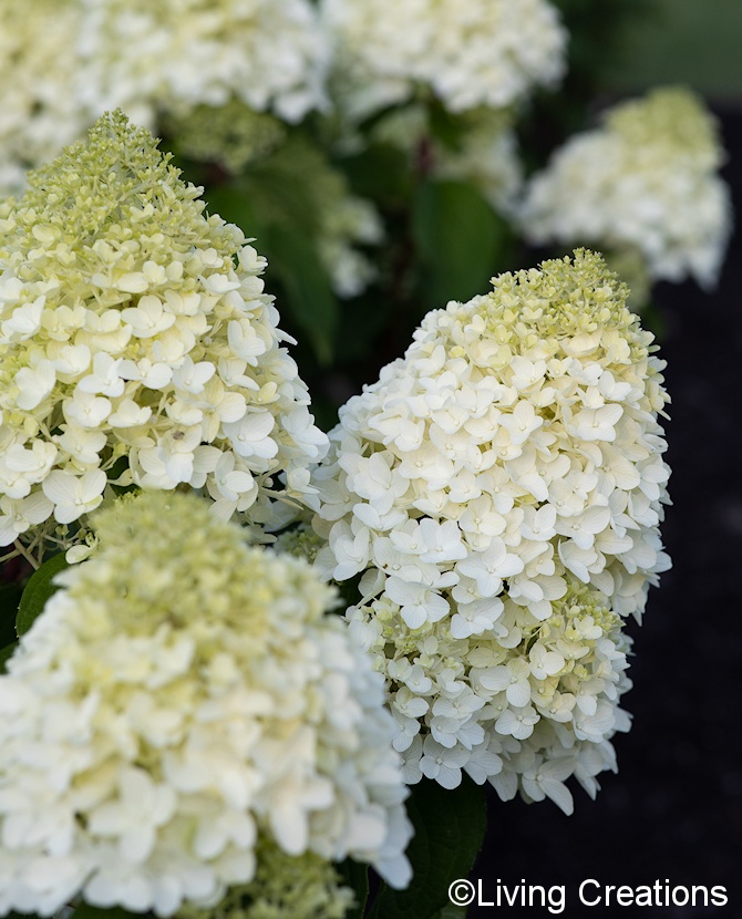 Keskikokoisen syyshortensian kukinnot pysyvät koko kauden valkoisina. Valkoisen sävy elää hieman kukinnan edetessä. Korkeus ja leveys noin 1 m. Huomioitu hopeisella KVBC-Awards -palkinnolla. Living Creations® hortensia.