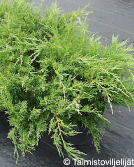 Hidaskasvuinen ja leveä havupensas, leveys noin 2 m. Neulaset raikkaanvihreät. Marjat kooltaan 0,5-1 cm. Menestyy sekä kuivassa että tuoreessa kevyehkössä maassa.