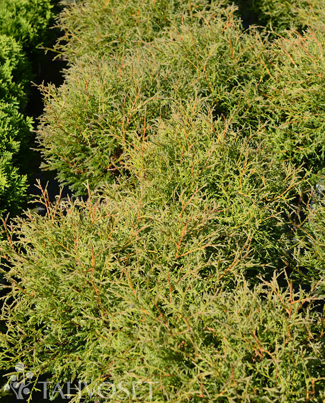 Kääpiökasvuinen, tiiviin pitsimäinen pallotuija. Versot harmahtavanvihreät, talvella hieman punertavat. Halkaisija 60-80 cm. Tuore kasvualusta. Aurinko-puolivarjo.