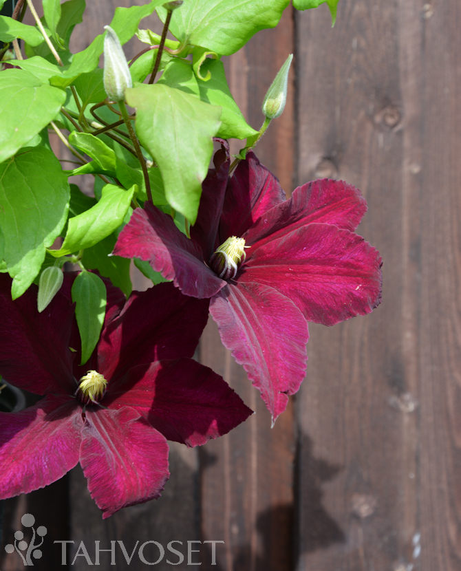 Suuret (10-15cm) syväntummanpunaiset kukat. Avautuessaan mustanpunaiset. Korkeus 2-3 m. Kukkii saman vuoden versoilla. Vaatii tuen. Kalkittu, ravinteikas kasvualusta.