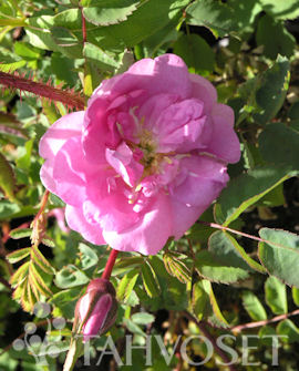 Rovaniemeltä löydetty kartanoruusuristeymä. Muistuttaa sekä suviruusua että metsäruusua. Melko vahvakasvuinen, kaartuvaoksainen pensas kasvaa noin 1,5 m korkeaksi. Pensaan tyviosa on hyvin piikkisä, mutta versojen yläosat lähes piikittömät. Puolikerrotut, vaaleanpunaiset kukat aukeavat kesäkuun loppupuolella ja kukinta kestää noin kolme viikkoa. Mietotuoksuinen ruusu kukkii vanhoilla versoilla. Pieniä, tummia kiulukoita muodostuu vähän. Juurivesoja muodostuu jonkin verran. Kartanoruusu, Centicifolia-Ryhmä.