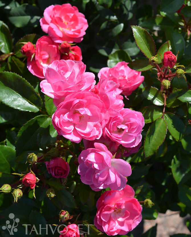 Tummanvihreä lehdistö ja punainen uusi kasvu muodostavat hienon kontrastin. Puolikerrotut, pinkit kukat nousevat kauniisti esille tummaa lehdistöä vasten. Erittäin elinvoimainen ja kestävä lajike. Runsaskukkainen pensas on ihanteellinen puutarhan huomiopisteenä tai kukkivana aidanteena. Omajuurinen. Rosa 'BAImas'. Easy Elegance®-ryhmä.