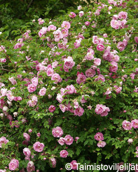 Kukkii kesä-heinäkuussa puolikerrotuin, tuoksuvin vaaleanpunaisin kukin. Tiheäkasvuinen, muistuttaa juhannusruusua. K-729. Tekee juurivesoja. Sopii yksittäin tai kukkivaksi aidanteeksi. Kukkii vanhoilla versoilla. Kiulukat kiiltävät, väriltään ruskeanpunaiset. Syysväri oranssinkeltainen. Kasvukorkeus 1,5-2 m.