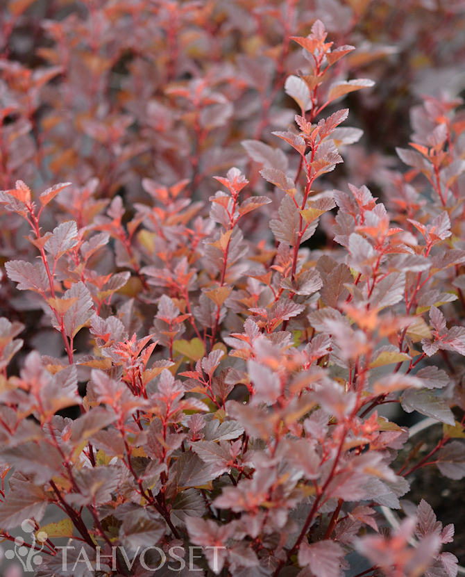 Pystyversoinen, pyöreähkö pikkupensas. Pienet, sirot lehdet puhkeavat oranssin ja keltaisen sävyissä ja muuttuvat pikkuhiljaa ruosteenpunaiseksi. Vaaleanpunertava kukinta alkukesällä. First Editions® kokoelma.