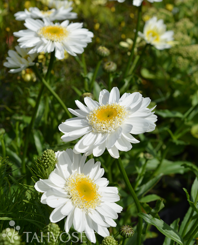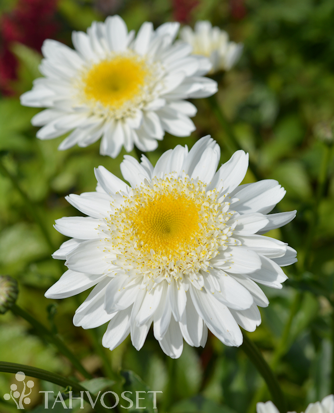 Kaunis kerrottu päivänkakkara, jolla hieman kohonnut keltuaisen keltainen keskusta. Hyvä perhoskasvi.