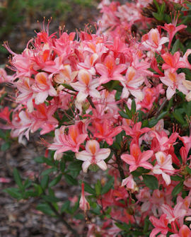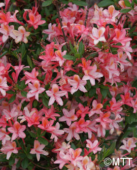 Kirkkaanpunaisista nupuista aukeavat vaaleanpunaiset, kellomaiset kukat. Teriön yläosassa on kellertävät laikut. Tummanvihreät lehdet puhkeavat kukkien sekaan. Syysväri punaruskeasta viininpunaiseen. Pensas on pystykasvuinen, nuorena hidaskasvuinen. Alkuperä Helsingin yliopisto. TTA-281. FinE. Rhododendron ’Directeur Charles Baumann’ × R. (’Choptank’ × ’Maori’)