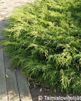 Kasvutapa suikertava ja maanmyötäinen. Neulaset suomumaiset, syksyllä ja talvella punertavat. Vaatimaton kasvupaikan suhteen. Hyvä maanpeitekasvi rinteisiin ja kivikkoihin. Leveys 1-2 metriä.
