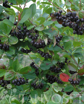 Rotevampikasvuinen kuin koristearonia. Haarottuu maltillisesti. Valkoiset kukat alkukesällä. Marjat mustat, voimakkaan aromikkaat ja sisältävät runsaasti jodia sekä muita kivennäisaineita. Marjat soveltuvat talouskäyttöön kuten mm. viinien valmistukseen. Syysväri loistavan punainen. Monikäyttöinen, terve ja kestävä pensas. Tunnetaan myös nimellä marjapihlonia.