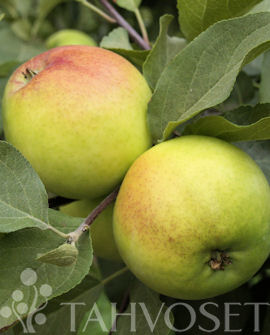 Kesälajike. Hedelmä keskisuuri tai suuri, muodoltaan kekomainen. Pohjaväri vaaleankeltainen, korkkipilkullinen, joskus auringon puoleista pintaa peittää ohut oranssinviirukas peiteväri. Maku sokerisen hapokas, mutta ei hapan. Malto rapea ja erittäin mehukas. Kotimainen jaloste (Melba x Huvitus). Kauppaanlasku vuosi 1999.